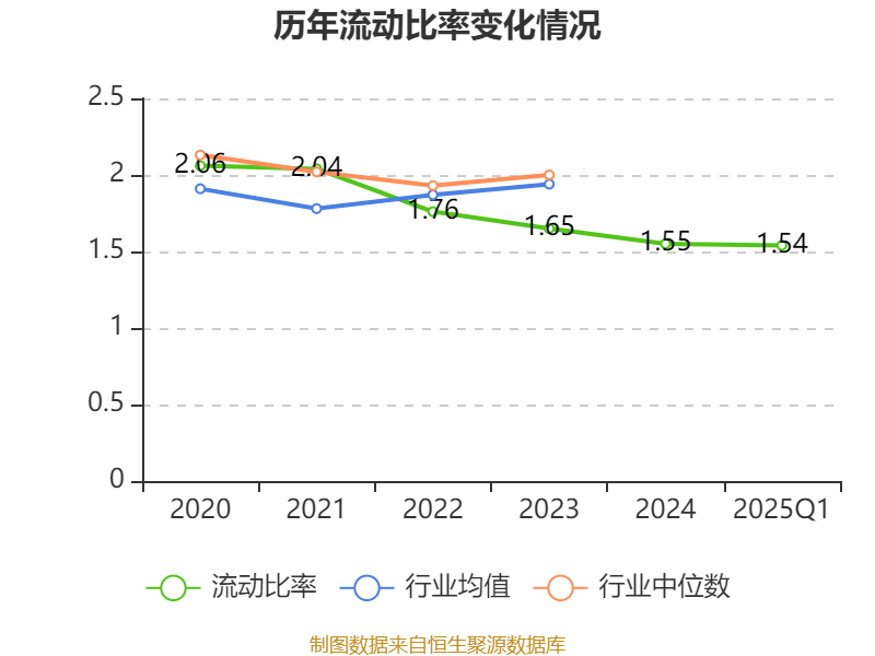 2025年第一季度,公司流动比率为1.54,速动比率为1.01。