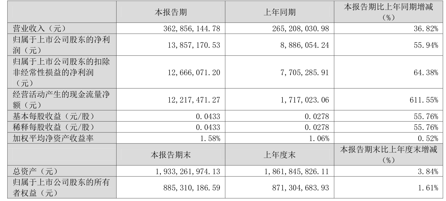 中证智能财讯科泰电源(300153)4月26日披露2025年第一季度报告。公司实现营业总收入3.63亿元,同比增长36.82%;归母净利润1385.72万元,同比增长55.94%;扣非净利润1266.61万元,同比增长64.38%;经营活动产生的现金流量净额为1221.75万元,同比增长611.55%;报告期内,科泰电源基本每股收益为0.0433元,加权平均净资产收益率为1.58%。