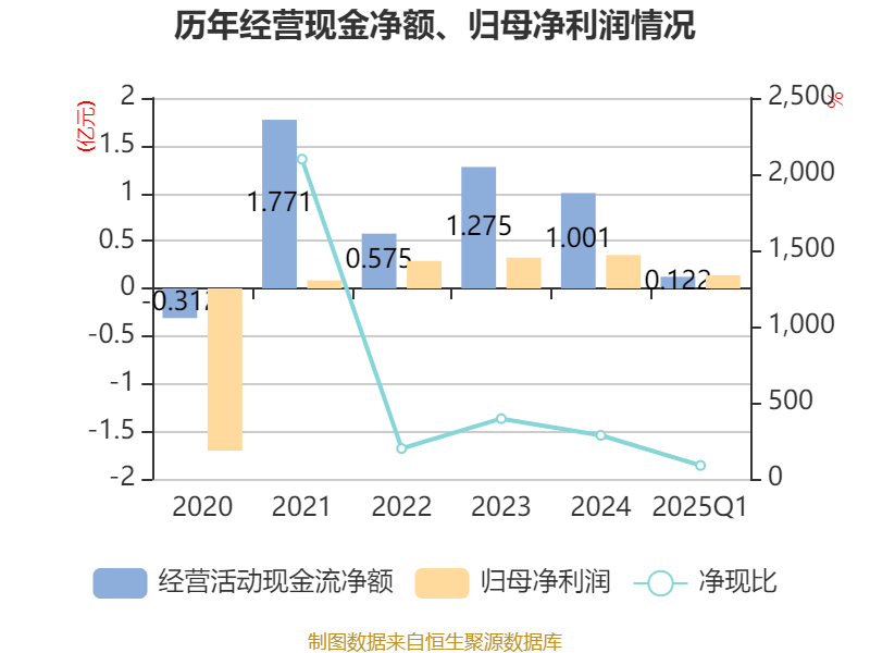 截至2025年一季度末,公司经营活动现金流净额为1221.75万元,同比增长611.55%;筹资活动现金流净额-4437.3万元维嘉优配平台,同比减少4994.36万元;投资活动现金流净额-318.98万元,上年同期为-196.92万元。