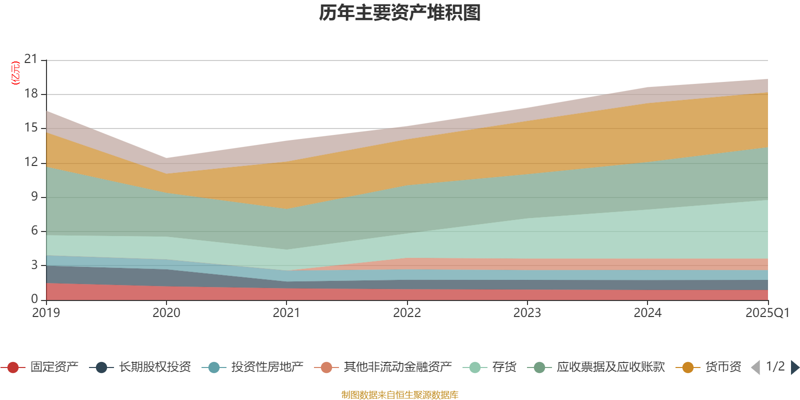 资产重大变化方面,截至2025年一季度末,公司存货较上年末增加19.67%,占公司总资产比重上升3.52个百分点;货币资金较上年末减少6.73%,占公司总资产比重下降2.82个百分点;应收票据及应收账款较上年末增加10.92%,占公司总资产比重上升1.52个百分点;预付款项较上年末减少40.86%,占公司总资产比重下降1.01个百分点。