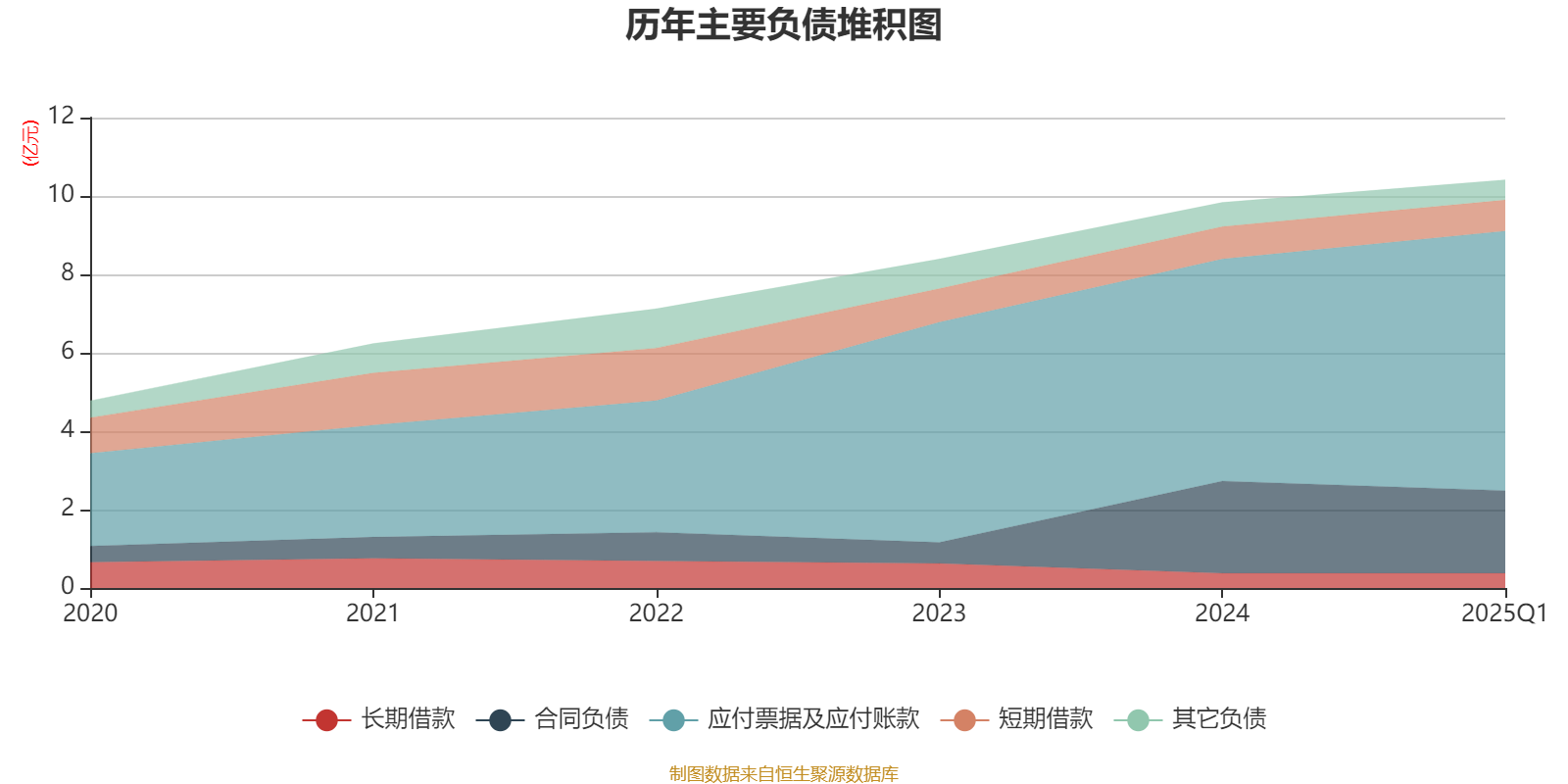 负债重大变化方面,截至2025年一季度末,公司应付票据及应付账款较上年末增加16.91%,占公司总资产比重上升3.83个百分点;合同负债较上年末减少10.27%,占公司总资产比重下降1.72个百分点;应付职工薪酬较上年末减少62.85%,占公司总资产比重下降0.38个百分点;短期借款较上年末减少4.23%,占公司总资产比重下降0.34个百分点。