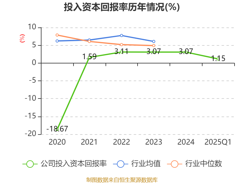 盈利能力方面, 2025年一季度公司加权平均净资产收益率为1.58%,同比上升0.52个百分点。公司2025年第一季度投入资本回报率为1.15%,较上年同期上升0.39个百分点。