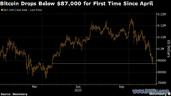 比特币下跌逾4%,自4月以来首次跌破8.7万美元。市场难以吸引新的买盘,而今年早些时候支撑价格的动能基本消退。这轮回调发生在短线交易者连续数周平仓,以及10月创纪录上涨后遗留持仓尚未消化之际,使市场更易受到抛压和剧烈波动影响。